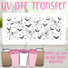 UV DTF is all the rage! This is a new technology that is so amazing it will blow your socks off! Instead of cutting, weeding and layering viny, our UV DTF stickers are an all in one answer to your prayers. Full colors are printed with no white space between. You just peel and stick and there you go! You have a beautiful glass can in an instant.