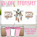 UV DTF is all the rage! This is a new technology that is so amazing it will blow your socks off! Instead of cutting, weeding and layering viny, our UV DTF stickers are an all in one answer to your prayers. Full colors are printed with no white space between. You just peel and stick and there you go! You have a beautiful glass can in an instant.