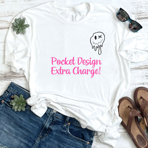 Design sold with pocket design. Pocket is 4 inches tall no matter what size transfer you order. DTF Transfers can be heat pressed onto any cotton/p...