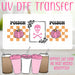 UV DTF is all the rage! This is a new technology that is so amazing it will blow your socks off! Instead of cutting, weeding and layering viny, our UV DTF stickers are an all in one answer to your prayers. Full colors are printed with no white space between. You just peel and stick and there you go! You have a beautiful glass can in an instant.